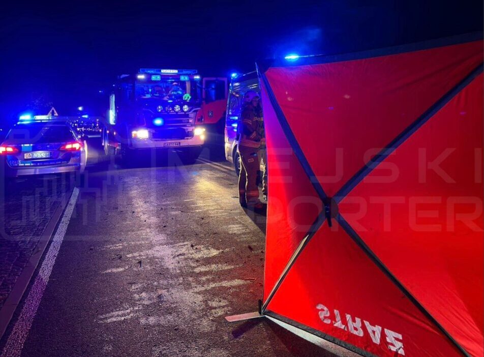 The tragic incident occurred around 6:30 PM on Saturday, March 28th, on National Road 50 between Zawiszyn (Wołomin County) and Łochów. An Audi collided with the rear of a trailer pulled by a farm tractor.