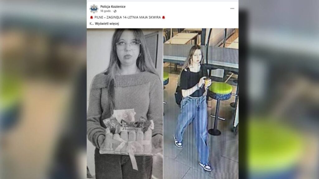 A 14-year-old girl, Maja Skwiry, has gone missing in Kozienice, Poland, after last being seen on September 20; her family and police are seeking information.