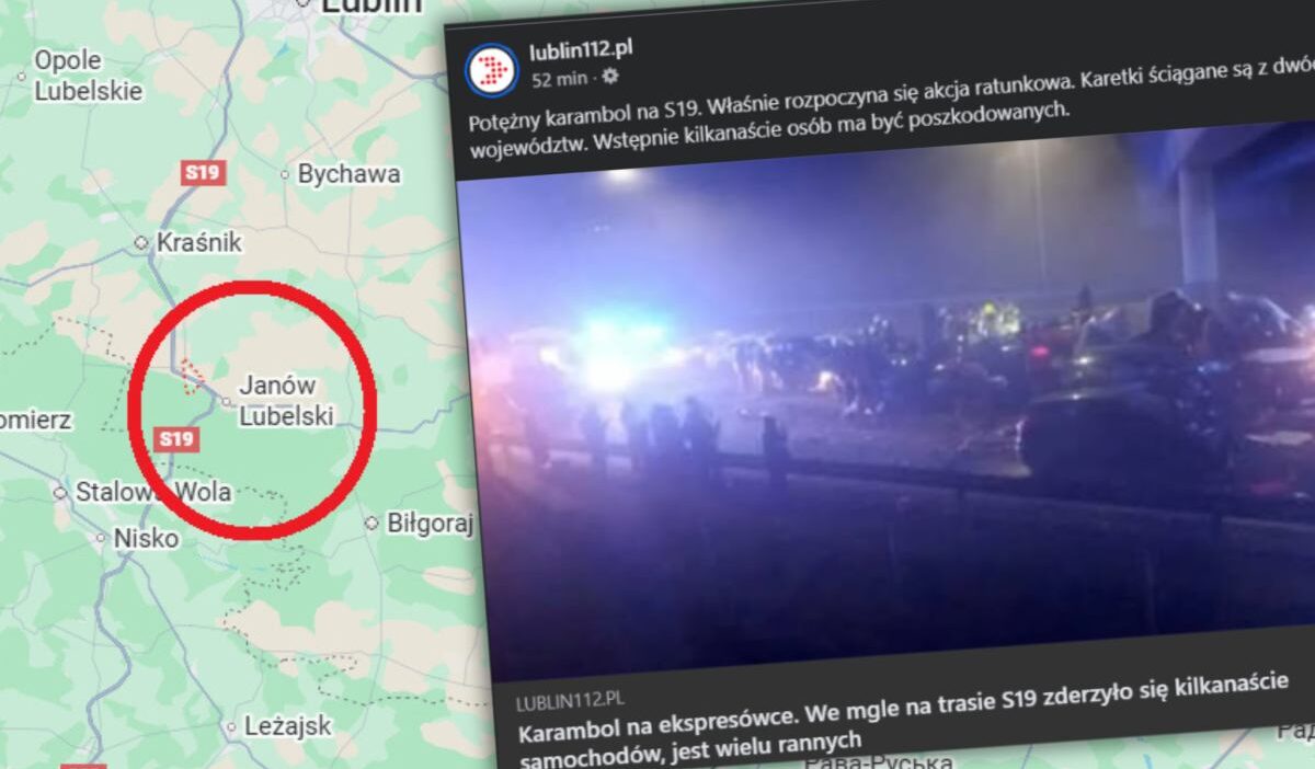 At least 17 vehicles collided on the S19 between Modliborzyce and Janów Lubelski North junctions in the evening of 19 December, according to radio RMF FM and local police portal Lublin112. The collision was caused by thick fog, which forced cars to hit successive vehicles. Eight people were taken to hospitals with stable conditions, and 11 rescue teams from Lublin and Podkarpacie responded to the scene.