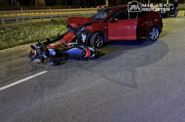 A motorcyclist was taken to the hospital and traffic was blocked on Wydawnicza Street near Chopin Airport after…
