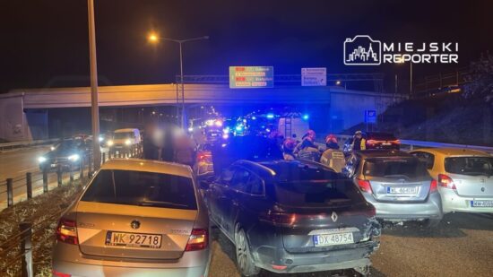 The incident occurred on a section of the S8 motorway at the intersection with Powązkowska Street. Eight vehicles were involved in a series of separate collisions.