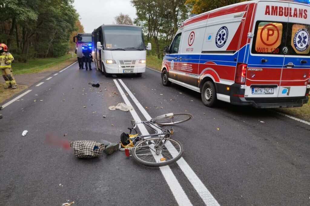 An 83‑year‑old cyclist was struck by an Iveco bus carrying about 30 passengers, including 28 children, on National Road 60 near Zalesie, Poland, on October 17.