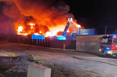 Collision on Strażackiej: a Volkswagen rammed a fence and fell into a retention tank. Firefighters, rescue teams, and police were on the scene; no injuries were reported.