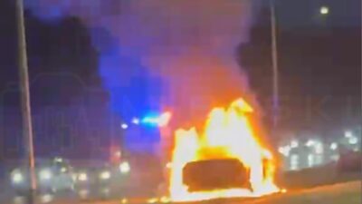 Driver fainted at wheel causing Toyota to crash into tram tracks and collide with Ford on Puławska Street in Mokotów Friday afternoon.