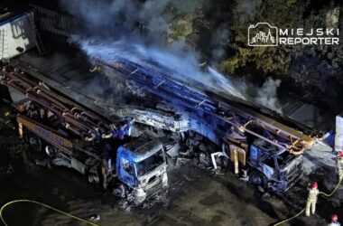 Thirteen fire crews, including 59 firefighters, participated in the operation. Units from Cypriany, Erminów, Jasień, Matyldów, Rybno, and Wężyki, along with Młodzieszyn’s KSRG, responded to the scene.
