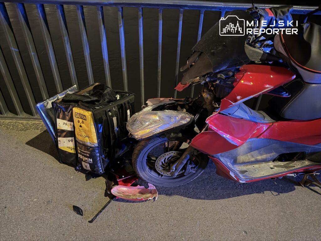 On Saturday evening, a food‑delivery rider on a Honda collided with a Mercedes on Warsaw’s Silesian‑Dąbrowski Bridge, causing traffic disruptions and a rider injury.