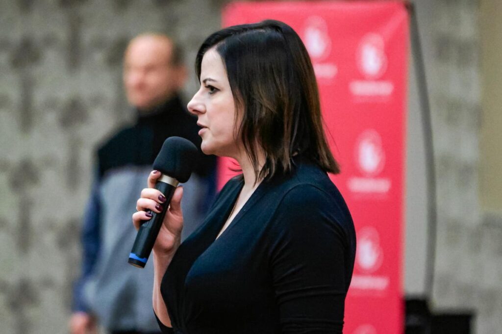 After approximately half an hour, Gdańsk official Joanna Pińska, accompanied by a police officer, approached the protesters regarding noise complaints from local residents. Kaja Godek accused Pińska of censoring the public assembly and ordered her to “leave and stop bothering the coordinator,” ignoring the presence of the police officer.