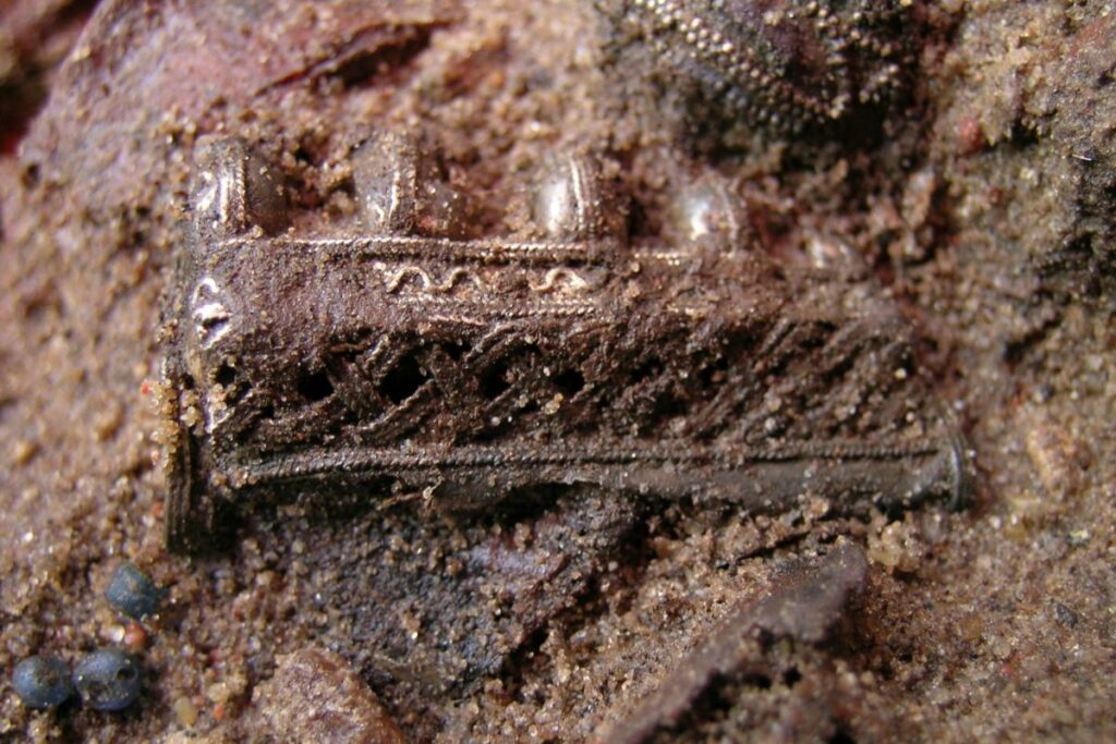 A burial of a woman around 60 years old featured field stones pressed around her skull, a practice associated with anti-vampire rituals intended to prevent the deceased from rising and returning to the village. Scientists identified a clear trace of an aneurysm on the inner surface of her right temporal bone.