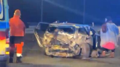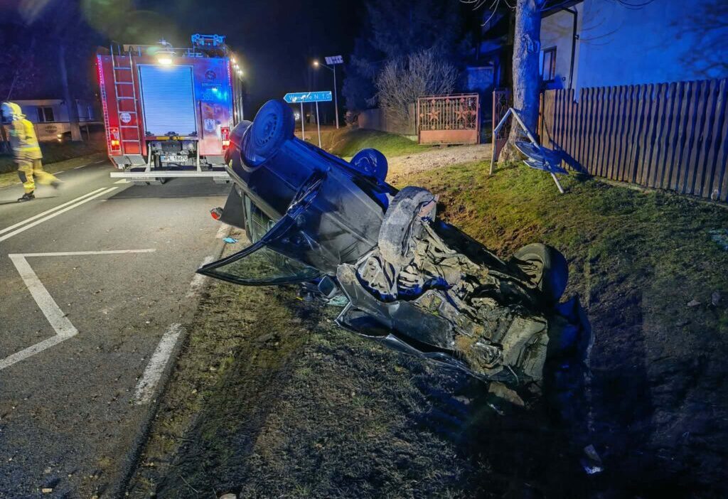 On Sunday, December 21 in the village of Rumunki, Gmina Gąbin (Płock County), an Audi vehicle lost control, veered off the road, hit traffic signs and a concrete barrier, and the car overturned.