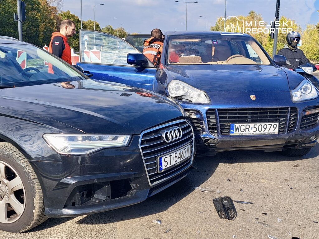 On Wednesday, October 8, around 2 p.m., an Audi collided with a Porsche at the intersection of Przyczółkowa and Pałacowa streets in Warsaw’s Wilanów, and the Porsche’s passenger has been hospitalized.