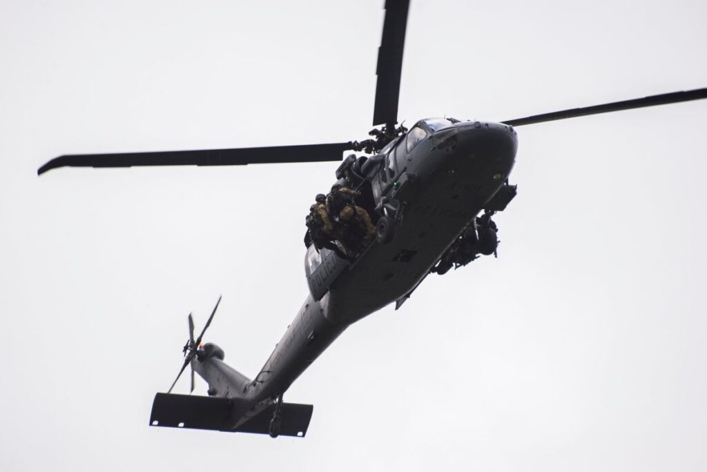 TVN24 first reported the police operation, receiving footage of a police helicopter circling near the “Radosław” Army Home Group roundabout. Several officers reportedly rappelled from the helicopter.