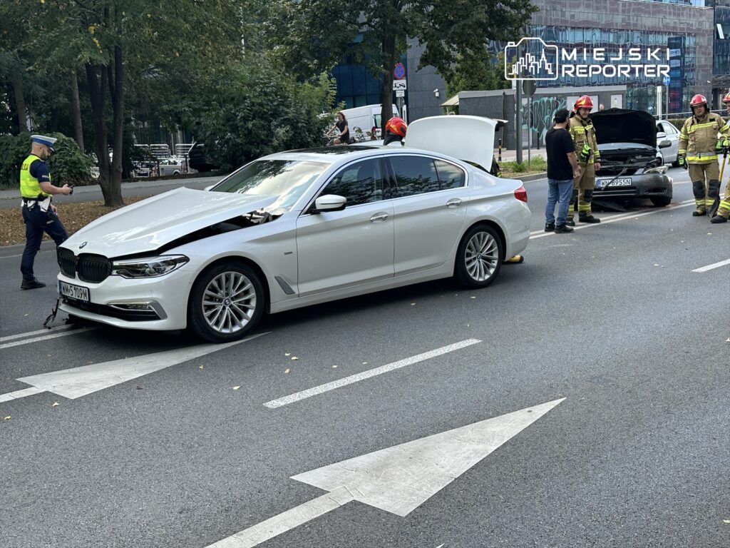 On Tuesday, the 9th of September, a BMW and Toyota collided on Domaniewska Street near the Samochodowa intersection leading to Aleje Niepodległości. Two individuals, the BMW driver and a child traveling with them, were transported to the hospital. The Toyota driver, also injured with head trauma, was taken to the hospital as well.