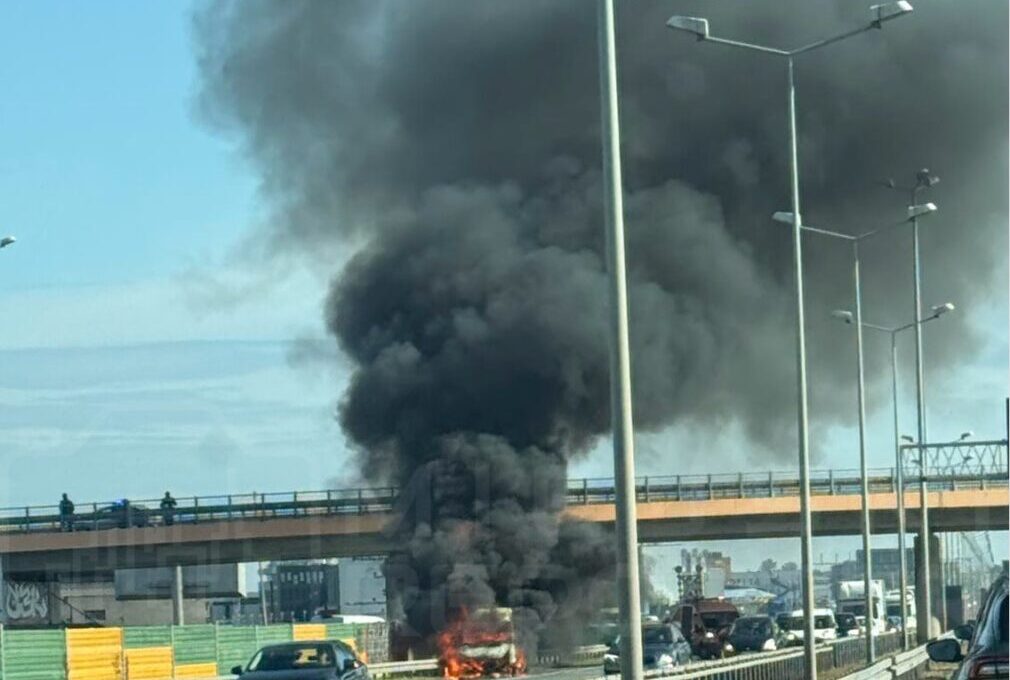 A bus caught fire on Route S8 near Szeligowska Street around 9:10 AM, burning down entirely and causing thick black smoke visible from afar. No injuries were reported as drivers escaped before flames spread.