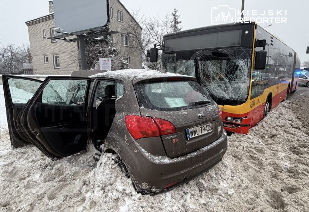 The incident occurred on Thursday, January 15, 2026, at the intersection of Piłsudski Avenue and ul. Lisa-Kuli. A city bus line 340 collided with a Kia car. The accident report came in after 6:20 AM, prompting dispatch of rescue services including the fire brigade, medical teams, and police.