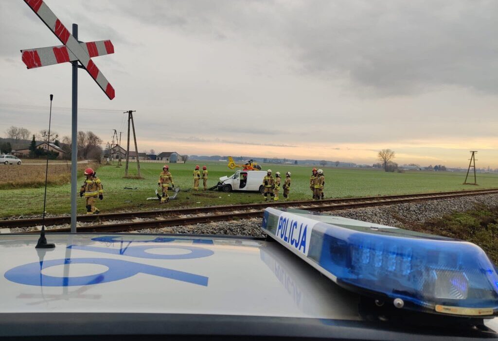 At about 10:50 a.m., a Citroën was struck by a railbus on an unguarded railway crossing in Kaczorowice, Powiat Płoński, and an LPR helicopter was dispatched to the scene.