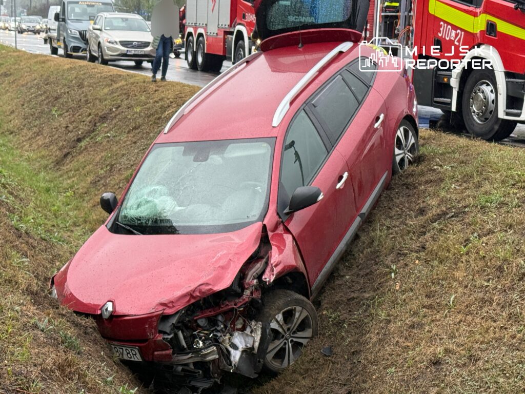 Two cars, a Skoda and a Renault, collided on Modlińska Street near the town hall in Białołęka, with the Renault ultimately ending up in a roadside ditch.