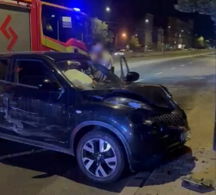 At approximately 23:00, a Nissan driver suddenly moved into the right lane and collided with a Mitsubishi that was traveling properly. The impact caused the Nissan to bounce and crash into a roadside pole.