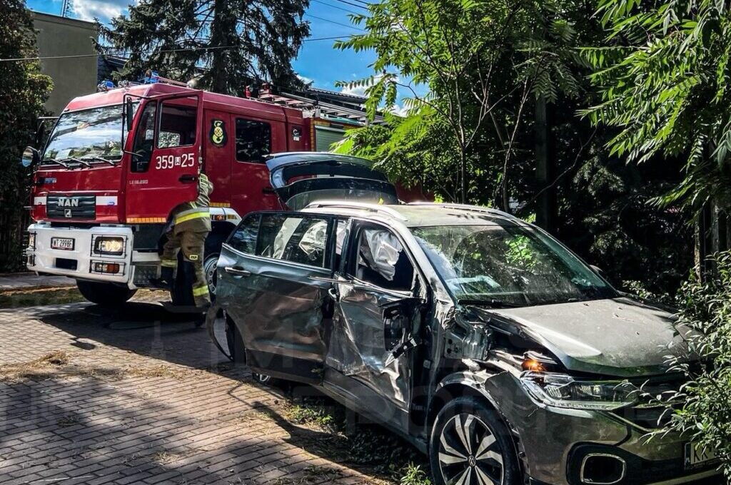 The incident occurred around 11:00 AM at the intersection of Mszańska and Truskolaskiej streets in Warsaw’s Wawer district, involving a Volkswagen with several occupants.