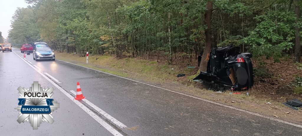 A car flipped and crashed into a tree on national road 48 in Wólka Kożuchowska (Białobrzeski district) on Wednesday morning, injuring four people including one critically.
