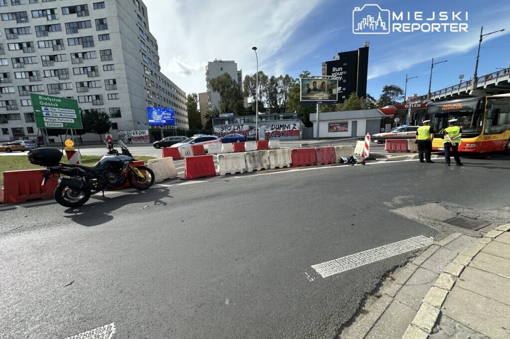 During morning rush hour on September 16, 2025 at 10:04 AM, a Suzuki motorcyclist and their passenger collided with a city bus on Wisłostrada near Poniatowski Bridge heading towards Mokotów. Both the motorcyclist and passenger were taken to the hospital for treatment.