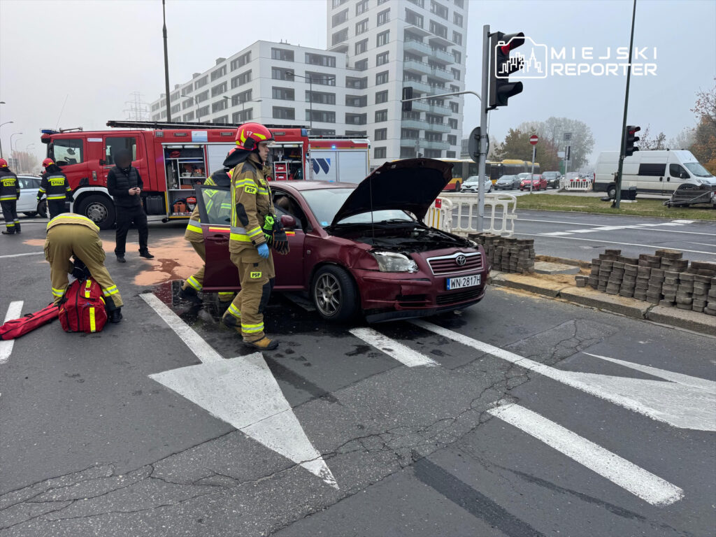 On October 15 before 9 a.m., a Toyota and a BMW crashed on the intersection of Anody and Ciszewskiego in Ursynów, injuring the BMW driver who was taken to hospital.