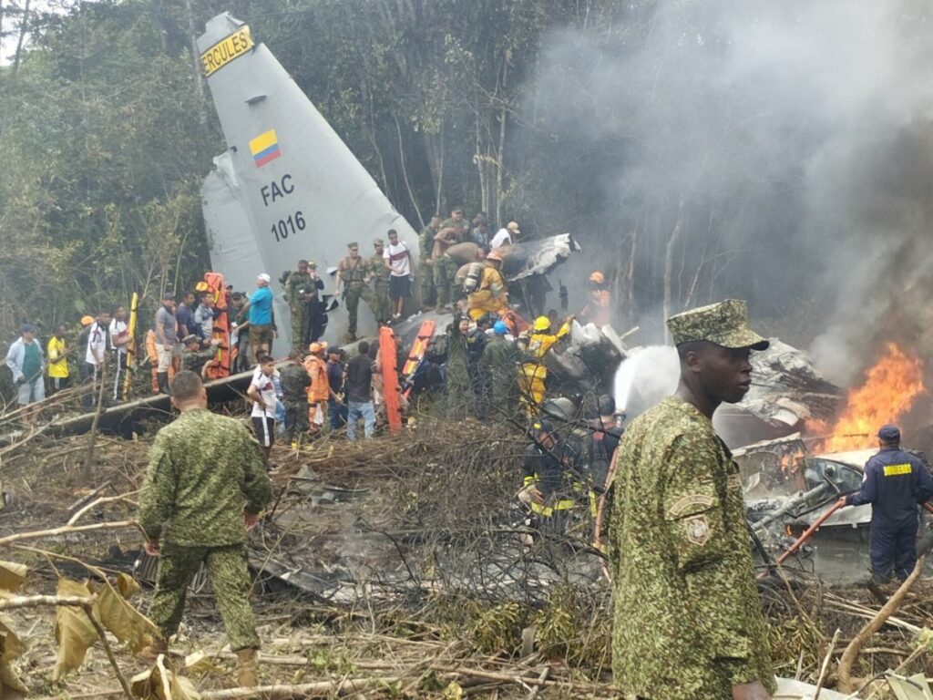 The Lockheed Martin Hercules C-130 crashed approximately 1.5 km after takeoff in a rural area near Puerto Leguízamo in southern Colombia, an area lacking paved roads where river transport is common.
