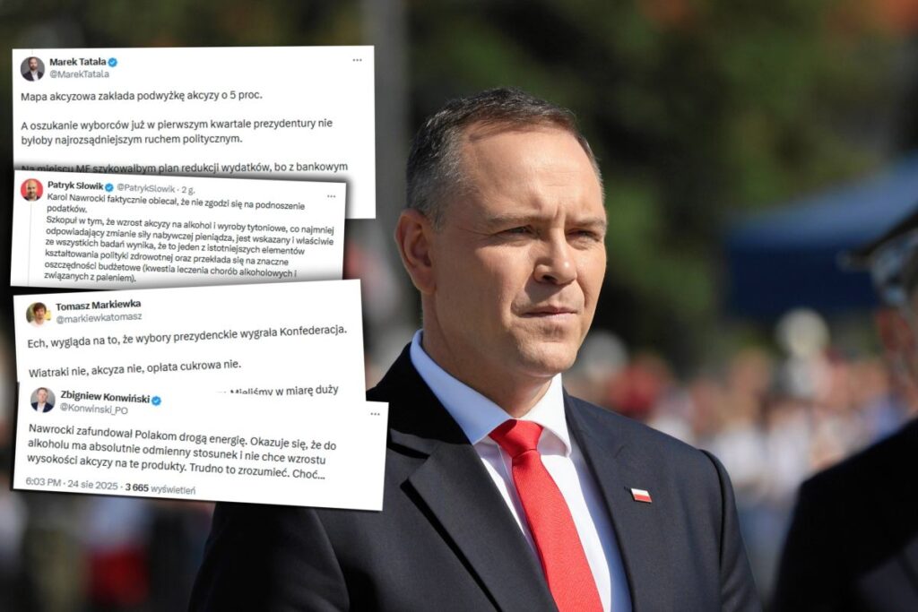 “President Karol Nawrocki has gifted Poles energy savings, yet he holds a completely different stance on alcohol and refuses to raise excise duties on these products. This is hard to understand,” wrote Zbigniew Konwiński of PO on X. He referenced the president’s previous veto on wind turbine legislation and freezing energy prices. Meanwhile, Slawomir Mentzen expressed optimism, noting Nawrocki signed his declaration opposing tax hikes. “I believe him,” he stated. “It seems the Confederation won the presidential elections. No wind turbines, no alcohol excise tax, no sugar tax. Even PiS supported these measures when in power. There was a significant political consensus on these issues,” commented journalist Tomasz Markiewka.