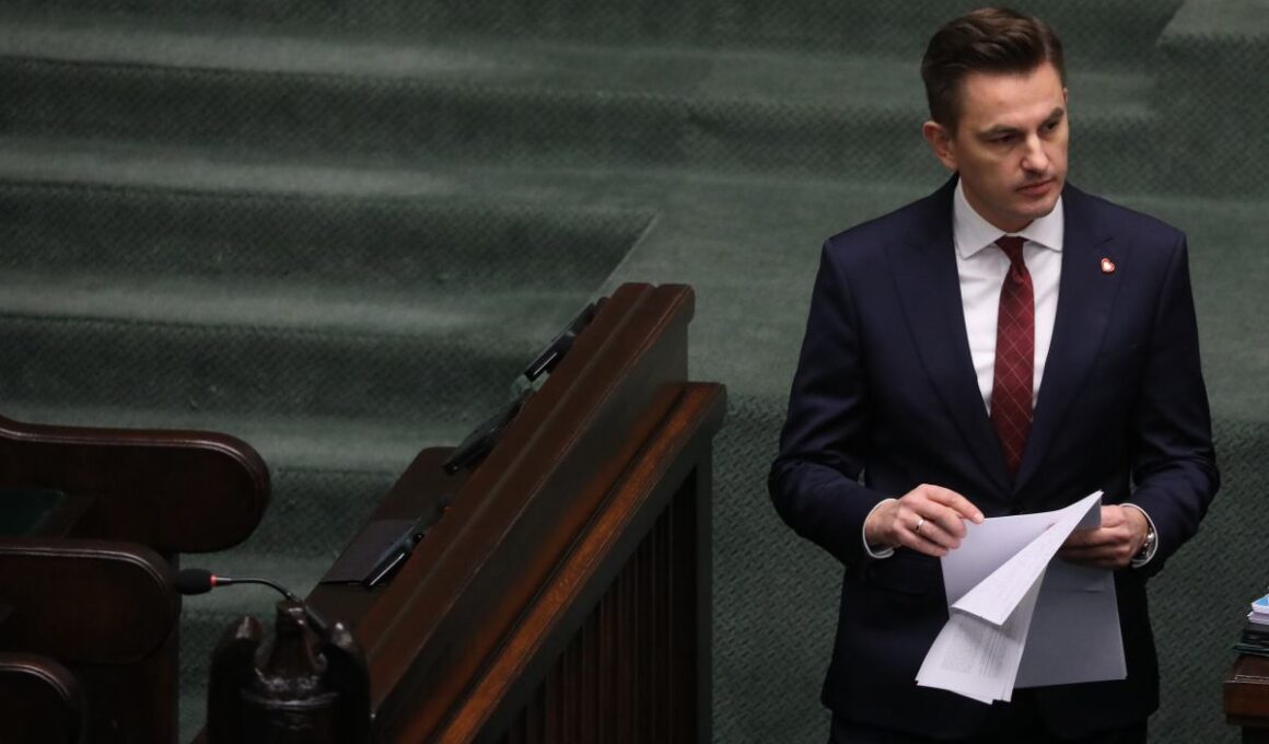 Arkadiusz Myrcha said the 100‑page document is “a manifesto of a political character, not a legal one.” He described its argument that the Constitutional Tribunal’s judges wear “the shoes of a politician” rather than “judge’s shoes,” and cautioned that it reflects the current political climate rather than judicial reality.