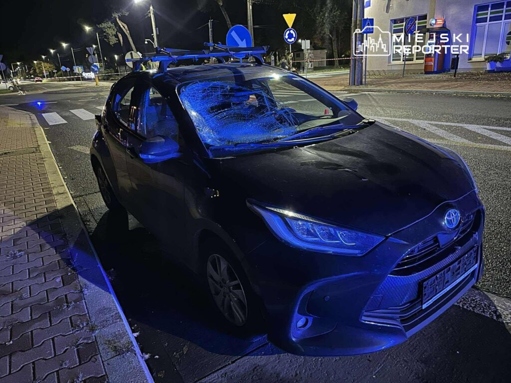 On 17 October at 6:20 p.m., a cyclist was struck by a Toyota cruiser on Piłsudskiego Street in Józefów, leaving an unmounted rider seriously injured and prompting an LPR helicopter response.