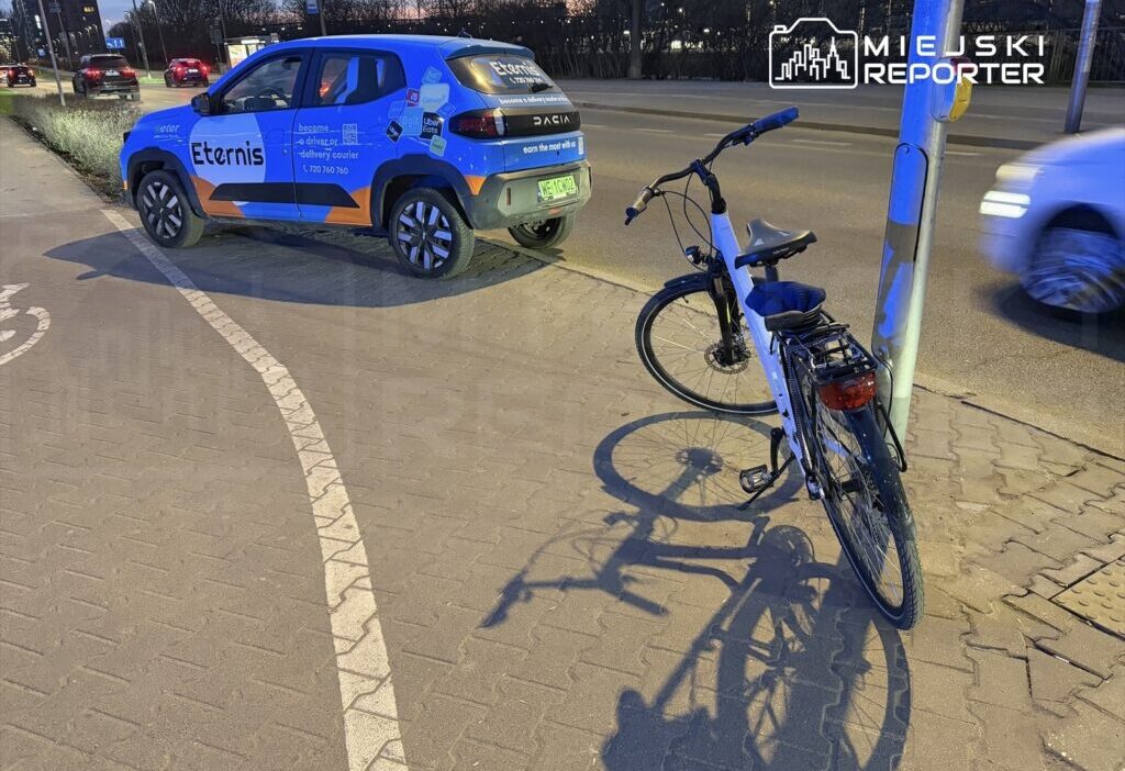 A cyclist was transported to a hospital with a head injury following a collision with a car on Tuesday, March 31st, around 7:00 PM at Plac Zawiszy in Warsaw.