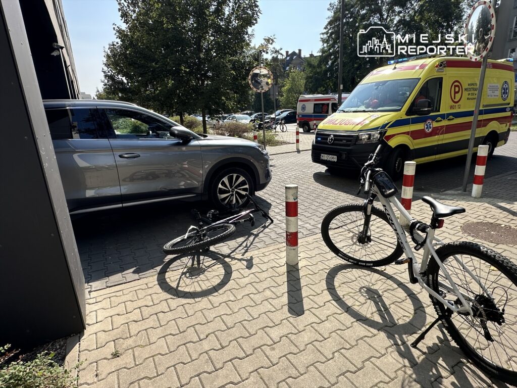 A Ukrainian cyclist sustained a leg injury after a collision with a car exiting an underground parking lot on Międzyborska Street in Wrocław on September 5th, requiring hospitalization.