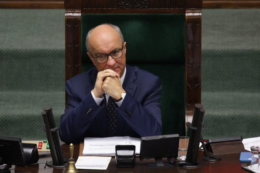 Marshal Włodzimierz Czarzasty said he knows the constitution, the Sejm rules, and the marshal’s powers, but there is no formal institution called a “marshal’s veto.” He added that his stance is a protest.