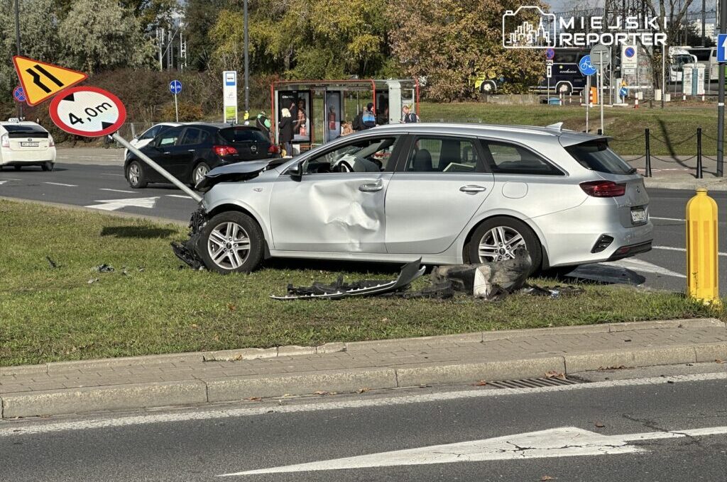 A collision near the Zesłańców Syberyjskich roundabout on October 19 left two cars and traffic signs damaged, and emergency callers were advised to write a statement as police might not attend.