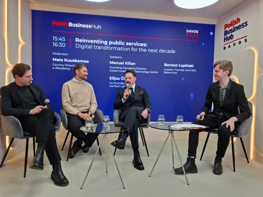 On January 19, a panel discussion featured Bartosz Łopiński, creator and CEO of Billennium; Manuel Kilian, Founding Managing Director of Global Government Technology Centre; and Elijus Čivilis, Co-Founder of GovTech Lab Lithuania. The discussion was moderated by Mats Kuuskemaa, Country Director of e-Residency.