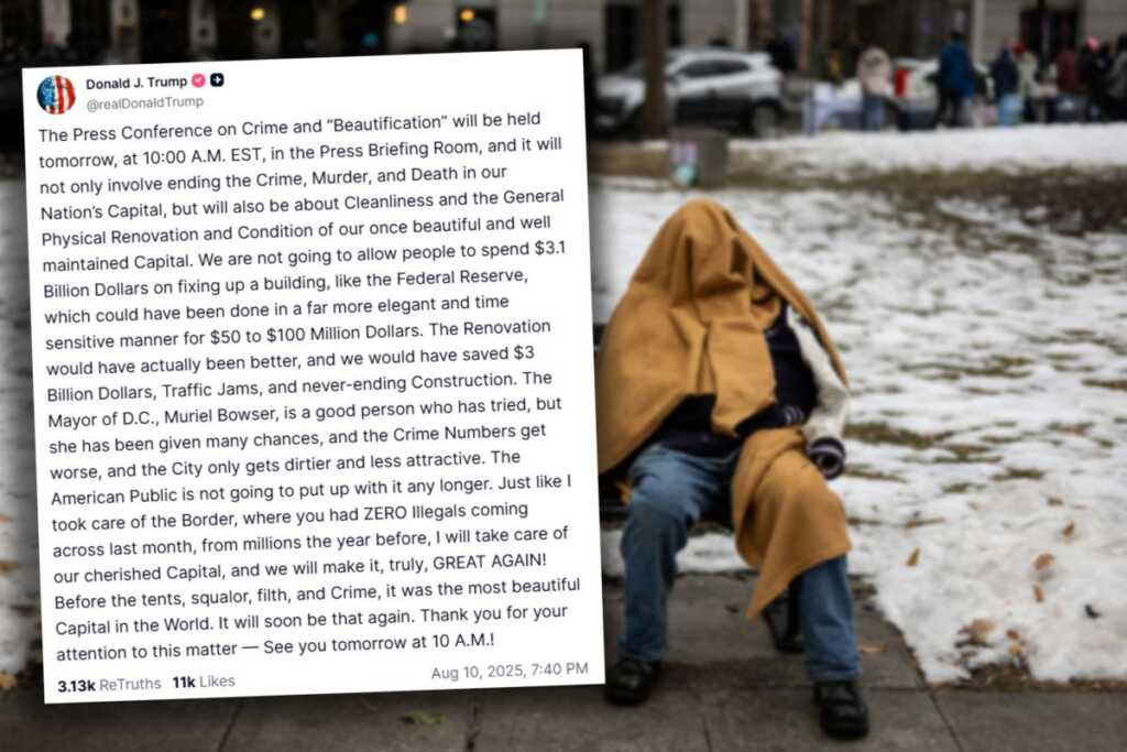 On Sunday, August 10, President Donald Trump declared that Washington must be emptied of all people in the homelessness crisis. He added that they must do so “immediately.” This was one of the points he raised in his latest post on truthSocial, previewing a Monday press conference on safety and the “beautification” of the U.S. capital. Trump criticized the $3.1 billion spent on renovating the Federal Reserve building, arguing that such a renovation could have been completed more elegantly and on time for $50–100 million, thereby saving $3 billion, eliminating traffic and endless construction. He repeatedly criticized Federal Reserve Chairman Jerome Powell as a “real failure” who is too dumb and politicized to lead the central bank. His remarks came after Powell kept interest rates at current levels and referred to the building’s renovation.