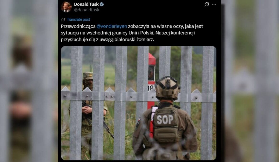 Polish Prime Minister Donald Tusk showed a photo of a Belarusian soldier attentively listening during his meeting with European Commission President Ursula von der Leyen at the Polish-Belarusian border crossing in Krinke.