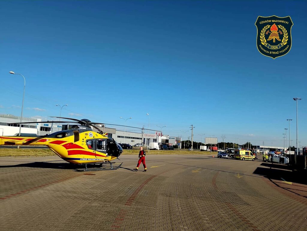 At about 8 a.m. a Toyota vehicle overturned at the intersection of Poznańska and Świerkowa streets in Broniszach (West Warsaw County). Firefighters, medical teams, the LPR helicopter “Ratownik 12,” and police were dispatched to the scene.