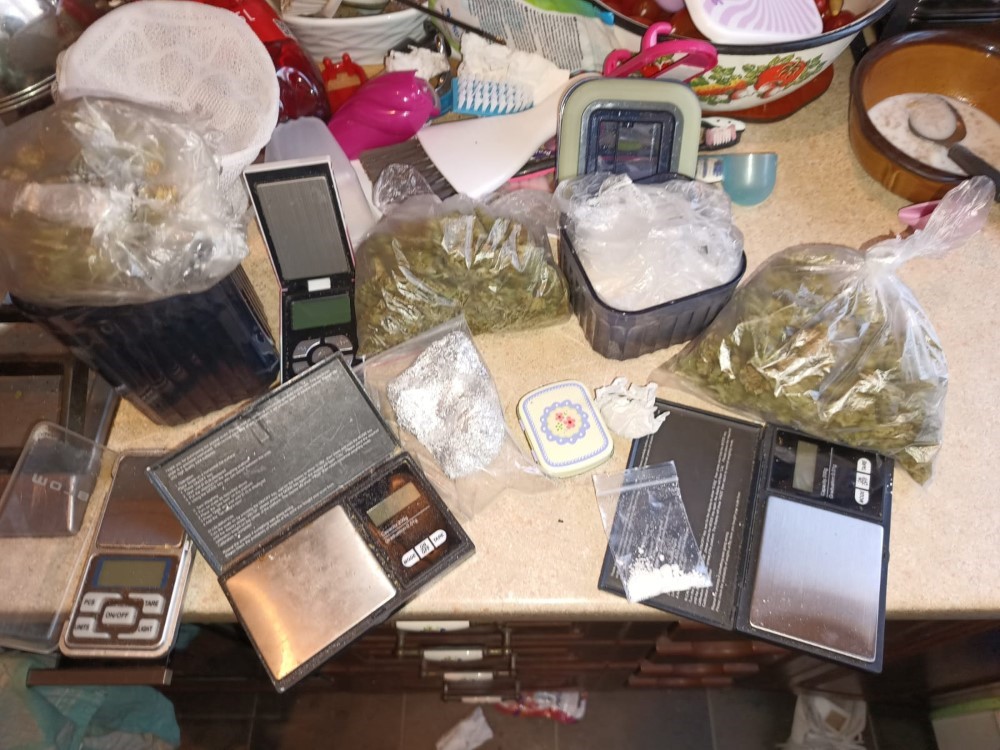 During the search, officers discovered a safe containing 125g of marijuana, 97g of mephedrone, 17.5g of hashish, and 7g of MDMA – all portioned and ready for sale.