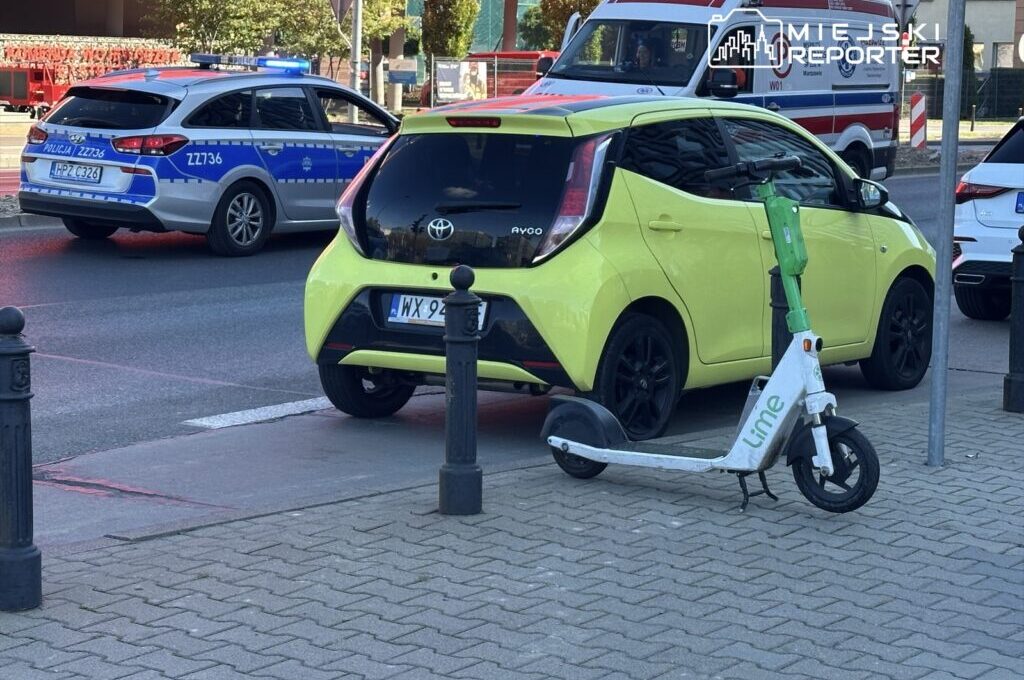 A woman riding an electric scooter was injured and fined after colliding with an Audi on a pedestrian crossing in Mokotów, Warsaw, on September 18.