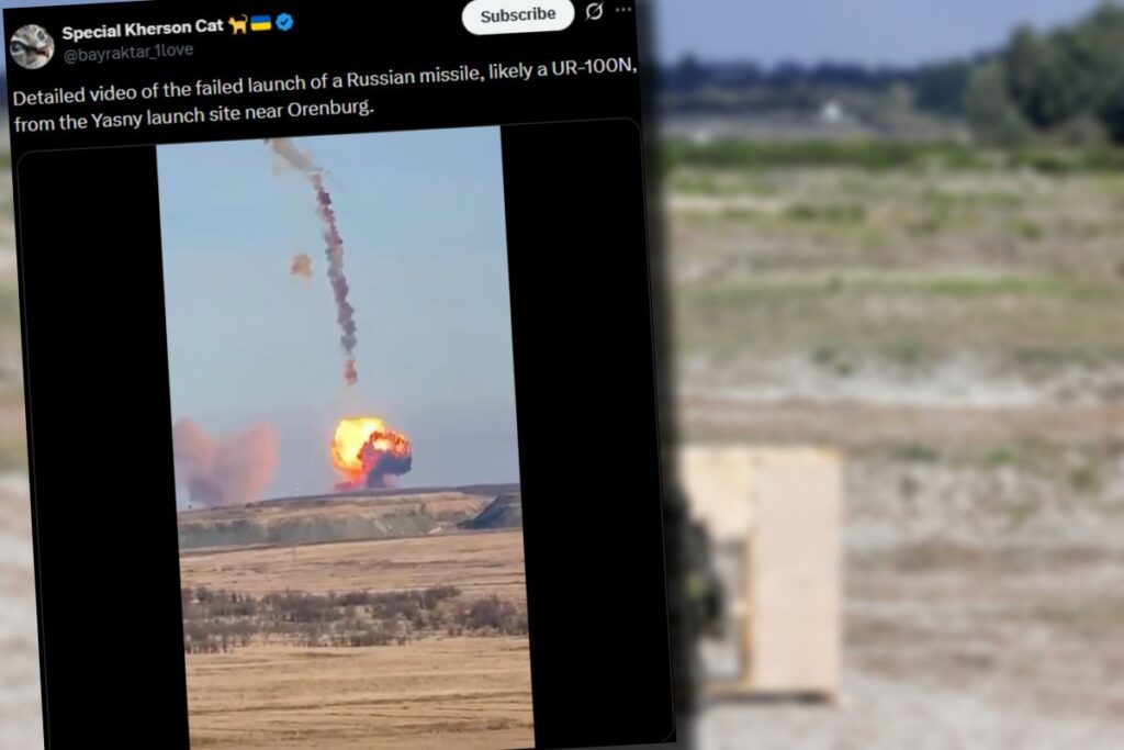 A failed intercontinental ballistic missile test at Russia’s Jasnyj test range in Orenburg Oblast produced a high‑altitude explosion and a visible purple toxic cloud.
