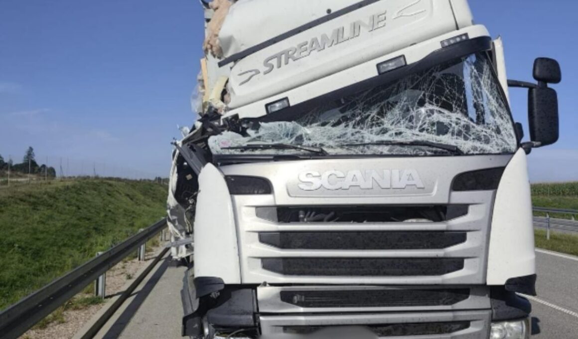 A truck traveling on the S61 route collided with another truck that was stationary on the emergency lane.