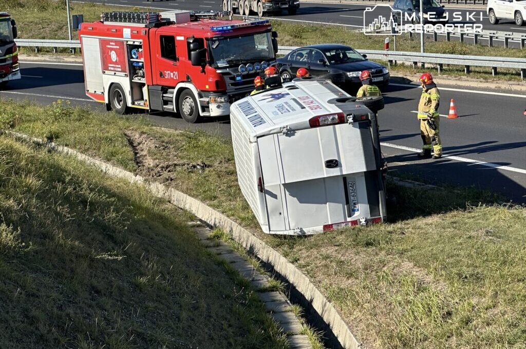On Monday, Oct. 13 at 11:42 a.m., a Fiat bus crashed and overturned onto the road’s side at the Węzła Lotnisko intersection, triggering an emergency response.