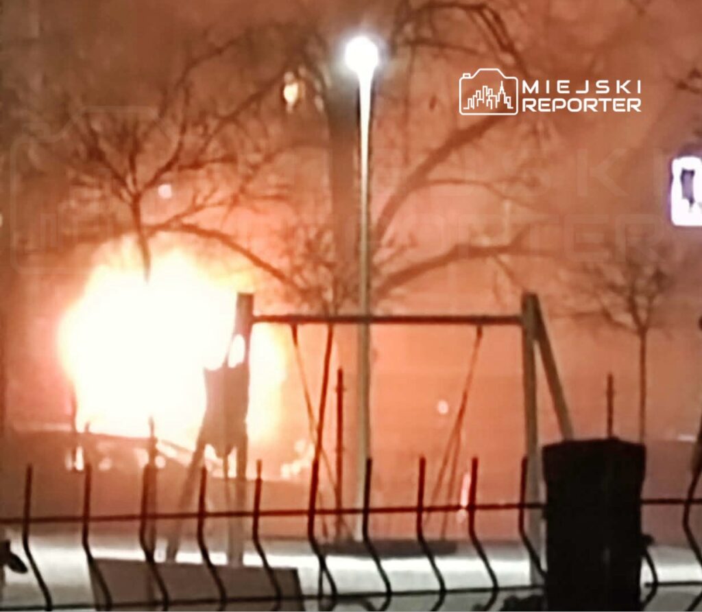 A fire broke out around 5:25 PM at ul. Przy Agorze on Warsaw’s Bielany, partially engulfing a parked bus and damaging a neighboring Peugeot.