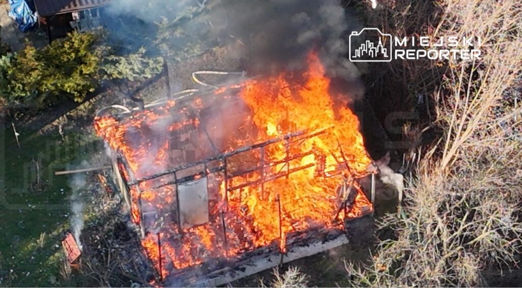 The incident occurred on Thursday, December 25 around 12:55 p.m. at Brózka Street, within the Koło II allotment gardens in Warsaw’s Wola district. By the time firefighters arrived, the wooden cottage was entirely engulfed and heavy smoke drifted over the surrounding gardens.