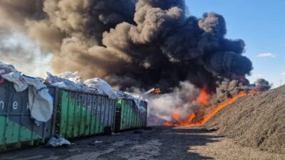 Westrych acknowledged the difficulty of the firefighting operation due to the nature of the stored material – thousands of tires are ablaze.