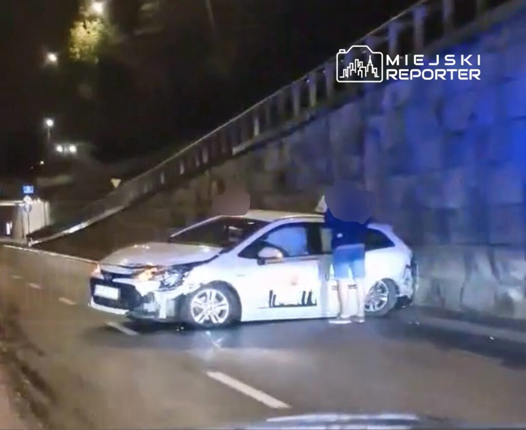 A foreign driver lost control of a Toyota on Warsaw’s Aleja Armii Ludowej on September 18, crashing into barriers and blocking one lane.