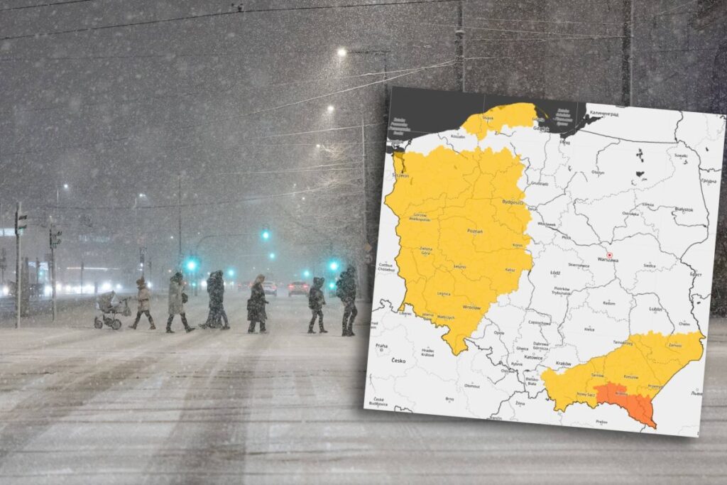 Polish meteorological institute IMGW has issued first‑degree warnings of ice, heavy snowfall, and strong winds across multiple voivodeships, effective Thursday onward.