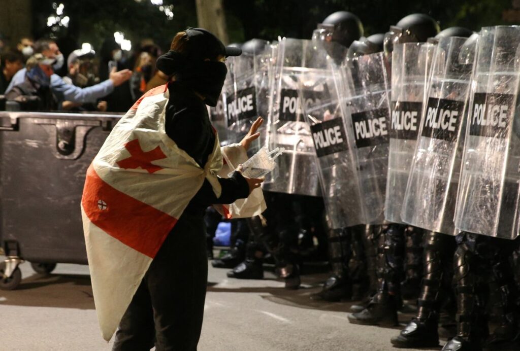 Following the results, demonstrators poured onto the streets of Tbilisi and other cities, many after months of anti‑government protests. Clashes with police, who used water cannons and tear gas, left five people detained.