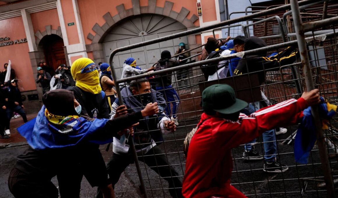 Protesters in Ecuador fired rocks at the vehicle carrying President Daniel Noboa, causing dents and shattered windows.