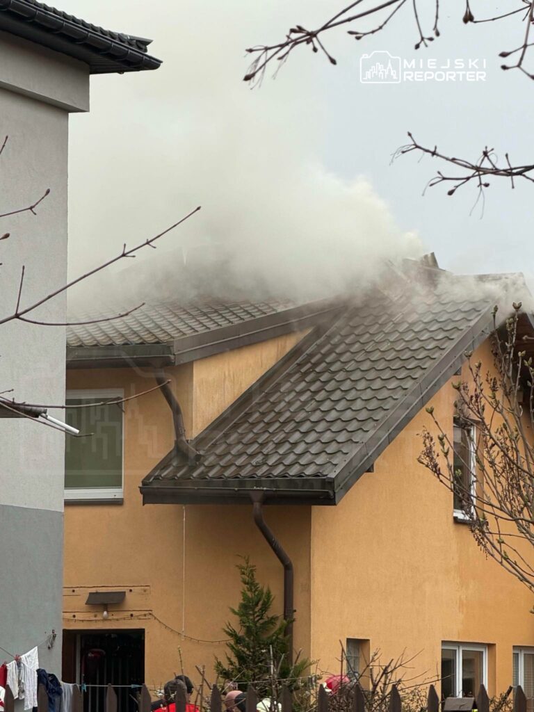 A fire broke out in the attic of a single-family home on Dworcowa Street in Sulejówek, near Warsaw, this morning, prompting an evacuation.